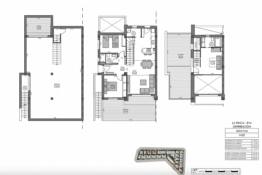 Radhuset har 3 sovrum samt 2 badrum och på första våningen har ni 2 sovrum samt ett komplett badrum. Rymligt vardagsrum med öppen planlösning till köket. Från vardagsrummet har ni utgång till den roliga terrassen och poolen. Trappen upp leder er till det tredje sovrummet och det andra kompletta badrummet samt en stor terrass.