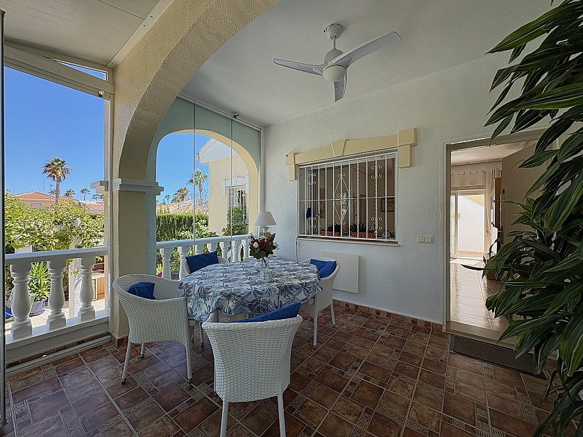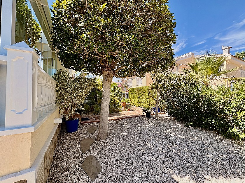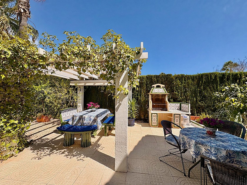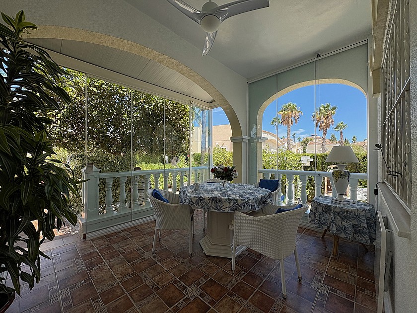 Beläget i det exklusiva gated community Conjunto Romeo, erbjuder denna fastighet en lugn, säker och familjevänlig miljö. Tomten sträcker sig över 220 m², med 85 m² byggd yta utformad på ett plan för maximal bekvämlighet. Huset har en elegant inglasad veranda på 17 m², perfekt för året runt-njutning, och en fantastisk privat trädgård på 135 m² fylld med vackra träd och häckar, komplett med en grillplats och en mysig uteplats perfekt för sammankomster.