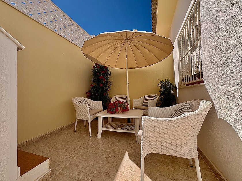 Detta hem är fullt möblerat och utrustat med vitvaror, redo att inflyttas. Det inkluderar luftkonditionering för komfort året runt och ett praktiskt förråd i källaren, perfekt för att hålla alla dina tillhörigheter organiserade. En annan höjdpunkt är närheten till den gemensamma poolen, som delas av endast ett fåtal grannar, vilket garanterar avskildhet och utmärkt underhåll. Plaza la Fiesta i Ciudad Quesada är ett mycket eftertraktat område tack vare sitt utmärkta läge.