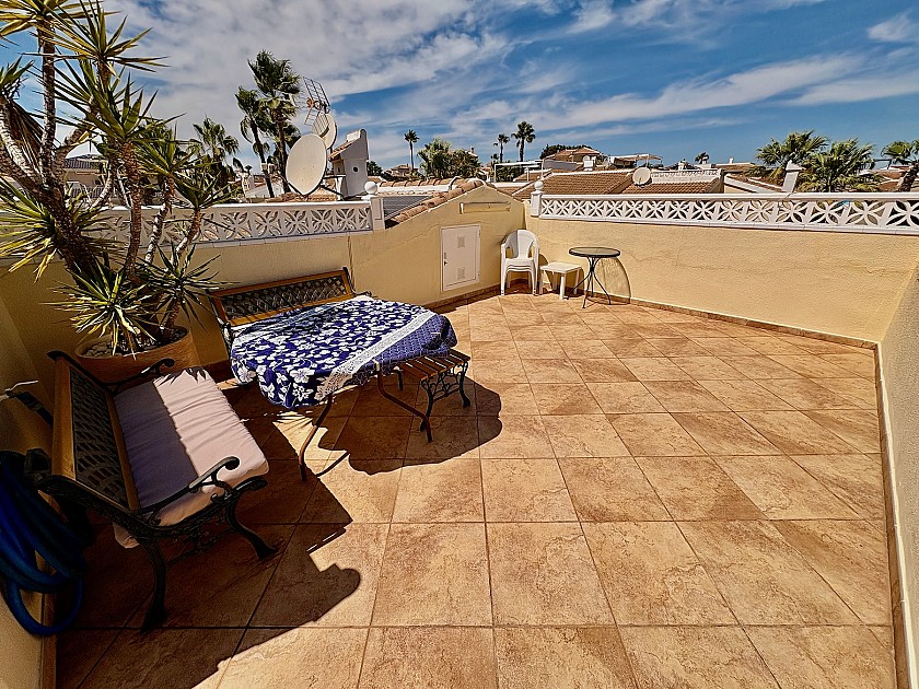På taket hittar du en 20 m² privat solarium, perfekt för att koppla av under medelhavssolen eller njuta av fri utsikt. I källaren finns ett rymligt förråd som perfekt kompletterar huset för längre vistelser eller året runt-boende.