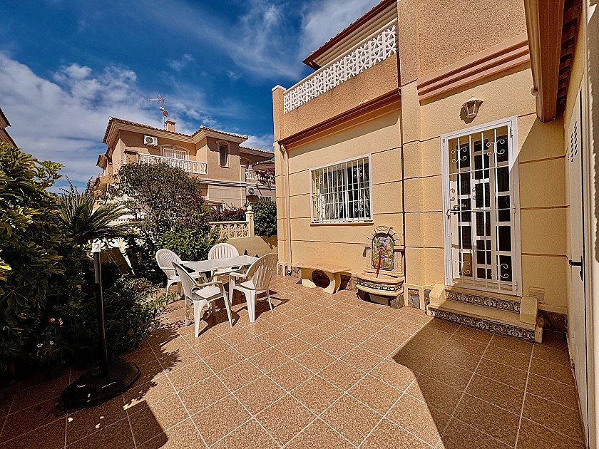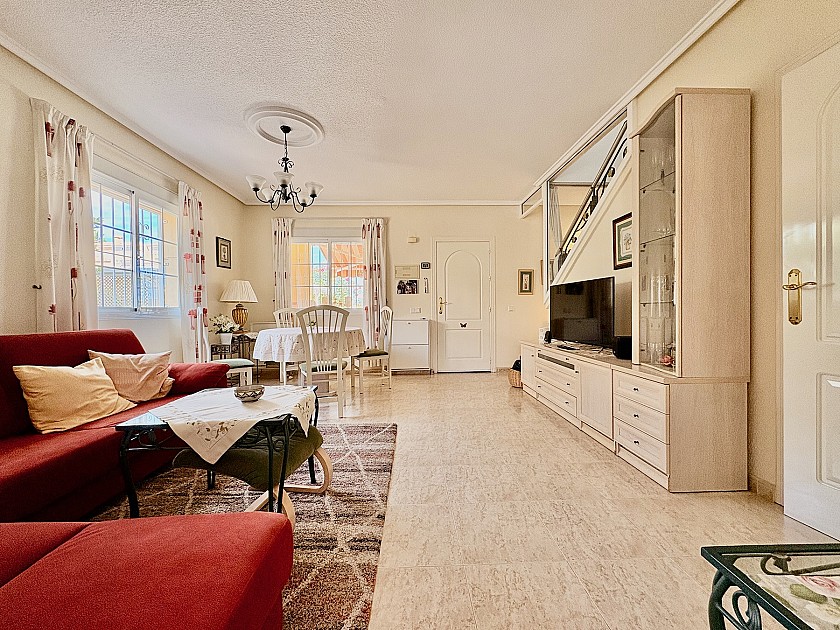 Vi presenterar en unik möjlighet att förvärva en magnifik "Lola"-modellduplex, belägen i det exklusiva Residencial Fortuna, inom den prestigefyllda urbanisationen Doña Pepa i Ciudad Quesada. Denna charmiga hörnduplex kombinerar komfort, stil och ett utmärkt läge i en lugn, familjevänlig miljö. Fastigheten har en byggd yta på 101 m² och boyta på 84 m² och en generös privat trädgård på 90 m², perfekt för att njuta av utomhusaktiviteter, hålla sammankomster eller koppla av under Medelhavssolen. Detta fina radhus har tre sovrum och 1 1/2 badrum, perfekt för familjer eller de som söker extra utrymme. Det separata köket är fullt utrustat och har utgång mot en mysig bakre veranda, perfekt för att njuta av eftermiddagssolen. Det ljusa och rymliga vardagsrummet har utgång till en veranda där du kan njuta av morgonsolen. Dessutom har fastigheten en praktisk täckt carport med gott om plats för parkering av bil och förvaring av cyklar, vilket garanterar bekvämlighet och säkerhet. Bostaden säljs fullt möblerat och utrustat med vitvaror och luftkonditionering, redo att inflyttas från dag ett. En av Residencial Fortunas mest framträdande inslag är dess fantastiska gemensamma pool, som anses vara en av de största och vackraste i Doña Pepa, perfekt för uppfriskande dopp och avkoppling i en välskött och exklusiv miljö. Här bor ni med gångavstånd till all tänkbar service. Små shoppingcenter med barer och restauranger samt stora matbutiker som Consum och Aldi på gångavstånd. Intill Ciudad Quesadas levande center har ni endast ca 1.6 Km. Varmt välkomna att kontakta oss idag för visning och information!