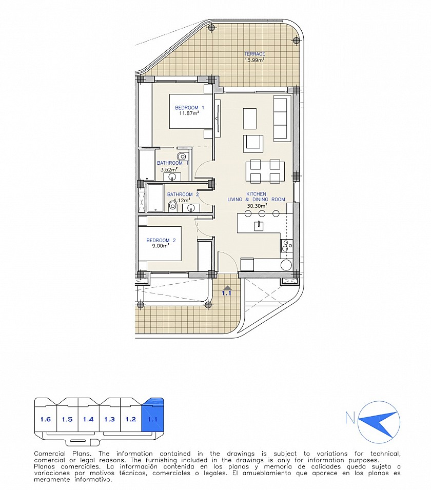 Murcia och Alicante, samt övriga stränder på Costa Cálida och Costa Blanca. Denna bostadsrätt består av 16 lägenheter med 2 och 3 sovrum samt 6 exklusiva villor som kombinerar modern design, kvalitet och funktionalitet. Den oöverträffade placeringen erbjuder fantastiska vyer över golf och Mar Menor. Beläget i första linjen vid den prestigefyllda golfbanan "La Serena Golf", känd för sina sjöar och vegetation.