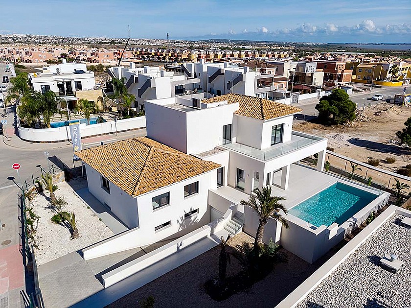 Detta unika projekt beläget i grönskande Los Montesinos med privat pool, källare och garage. Villan är byggd med eftertanke och i mycket hög och exklusiv standard med öppna härliga planlösningar.