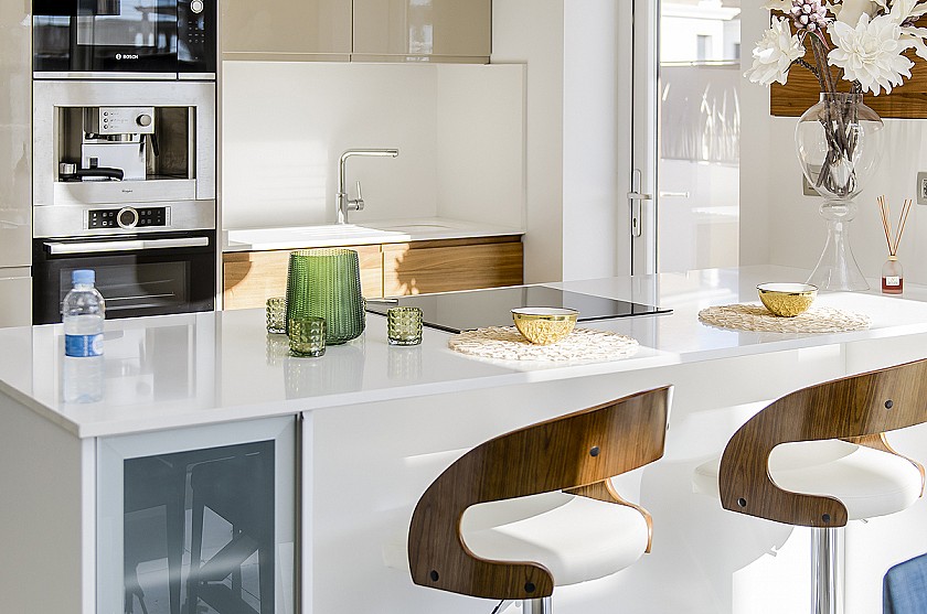 Samtliga villor erbjuds i tre sovrum och tre badrum, vardagsrum i öppen planlösning mot köket och med utgång till trädgården och den privata swimmingpoolen.