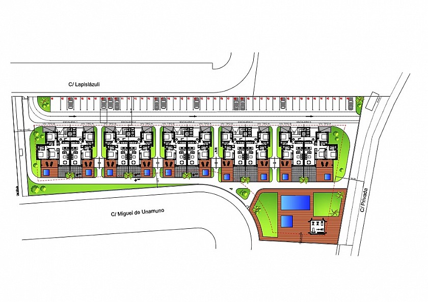 Här erbjuds lägenheter med två alt. tre sovrum & två badrum samltiga med privat parkering.