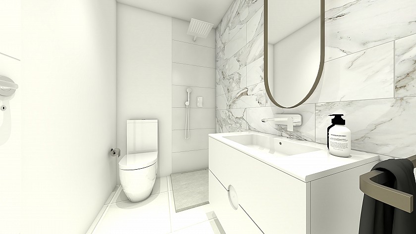 Här erbjuds lägenheter med 2 alt. 3 sovrum & 2 badrum, öppna moderna planlösingar med utgång till uteplats.
