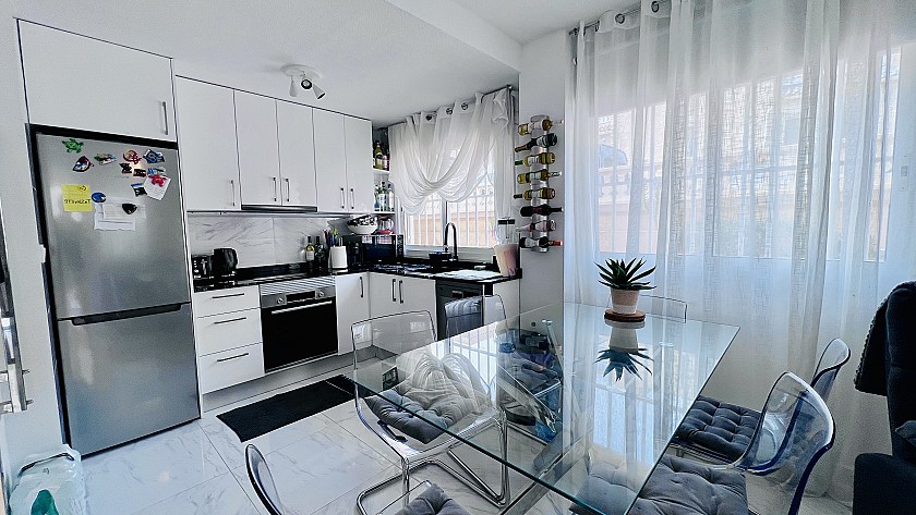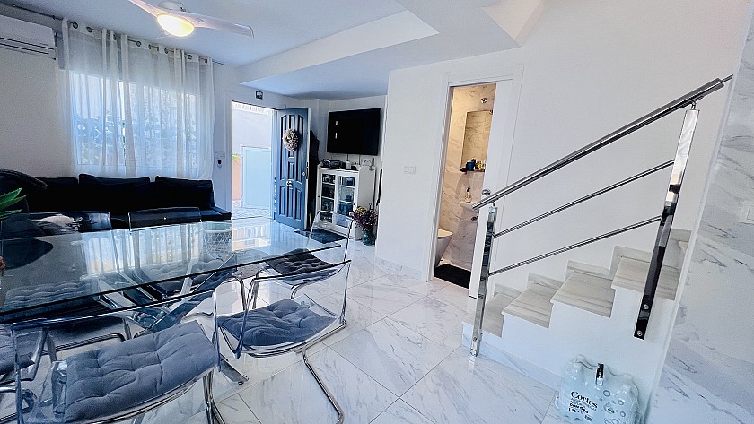 Vi presenterar med stolthet detta fantastiska hörn-radhus i modern stil, totalrenoverat med fokus på komfort och kvalitet – beläget bara 100 meter från den populära stranden La Mata. Bostaden erbjuder 95 m² välplanerade ytor med 3 sovrum, ett ljust vardagsrum med öppet kök (alla vitvaror är nya och energisnåla) samt ett privat solarium med dusch – perfekt för avkoppling i solen. Dessutom finns ett förråd på 25 m², luftkonditionering, takfläktar med fjärrkontroll och elvärme. Nordvästläge. En inflyttningsklar bostad, perfekt både som semesterhem och för året runt-boende nära havet.