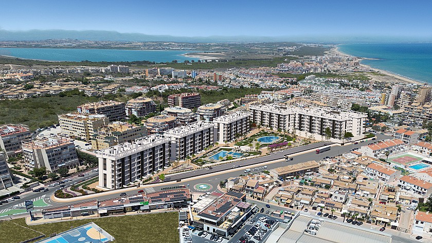 Plats: Bostadskomplexet ligger mittemot köpcentret Torremarina, med ett stort snabbköp och många affärer, och har även bekväm och snabb tillgång till centrum av Torrevieja, med en stadsbusshållplats några meter bort och med mycket god tillgång till centrum. riksväg H-332.