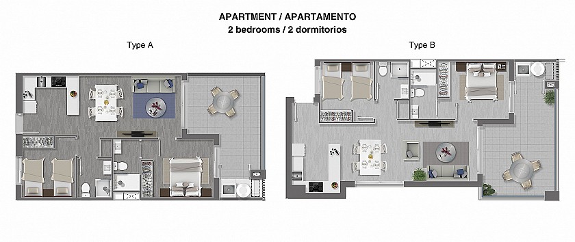 Samtliga lägenheter nås via hiss och erbjuds i två sovrum och två badrum förutom takvåningarna som har tre sovrum & två badrum.
