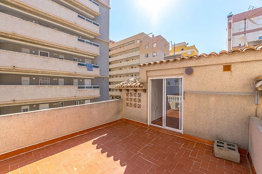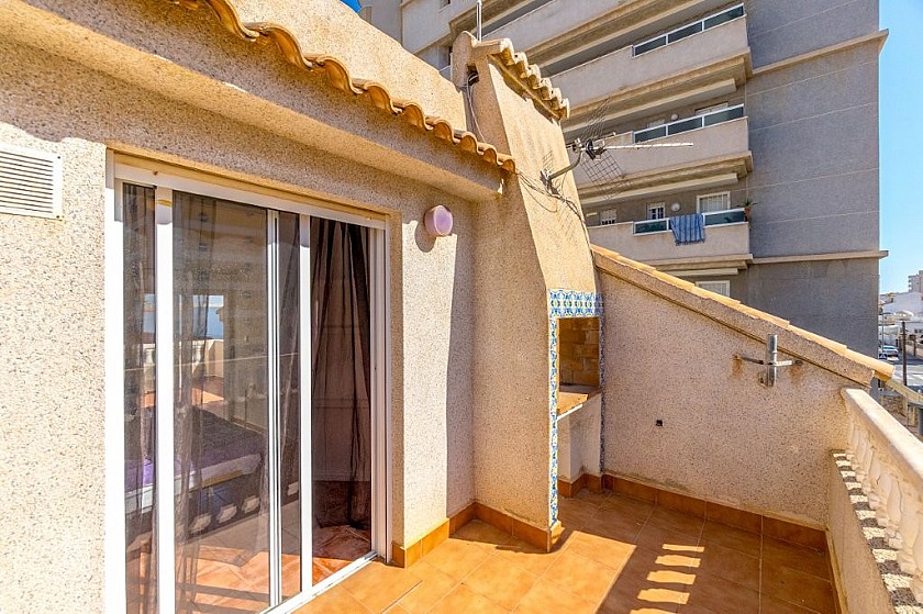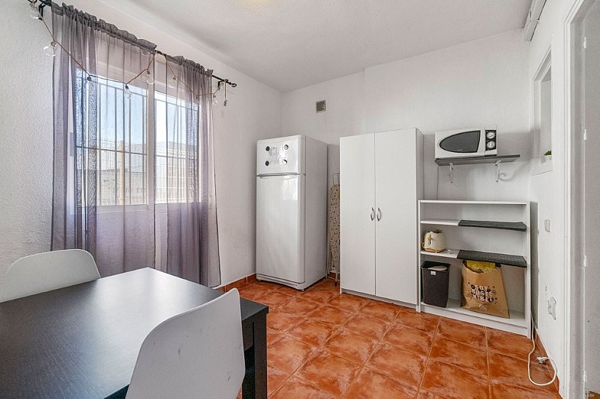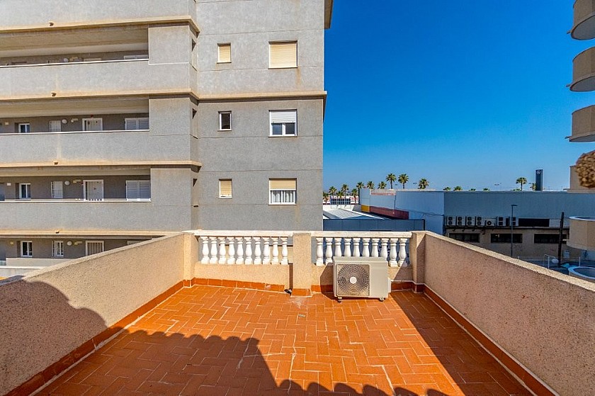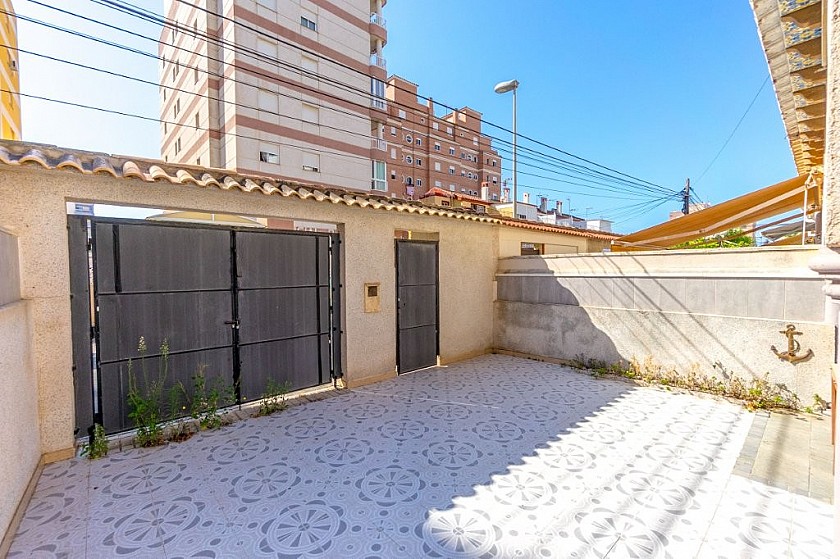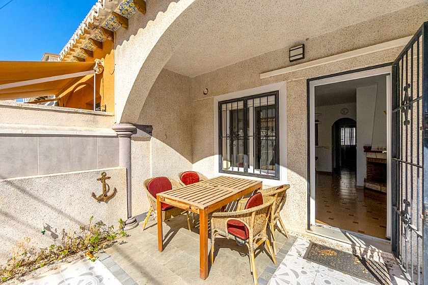 Varmt välkomna till Nueva Torrevieja en kort bit från centrum, stranden och strandpromenaden. Här presenterar vi ett trevligt stort radhus som erbjuder er 4 sovrum i ett lugnt område med många permanenta invånare. Genom gaten välkomnas ni av en stor terrass på 69.98 kvadratmeter, gott om plats för utemöbler och grill. Vidare in genom entrén kommer ni in i vardagsrummet med öppen spis och öppen planlösning mot köket. På denna våning finns även 1 gästtoalett och en matsal. På andra våningen finns 3 sovrum, 1 badrum och en terrass. Högst upp finns ett sovrum och takterrass. Fastigheten säljs möblerad, med vitvaror och luftkonditionering. Detta är ett område som lever året runt. Det finns flera lokala restauranger och butiker i närheten och den berömda fredagsmarknaden äger rum alldeles i närheten. Detta är hemmet för dig som vill bo centralt med närhet till havet och centrum. Varmt välkomna att kontakta oss idag för visning och information av detta rymliga radhus.